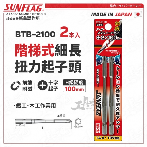 新龜- 細長扭力起子頭 BTB-2100 100mm 階梯式 日本 新龜 SUNFLAG 十字起