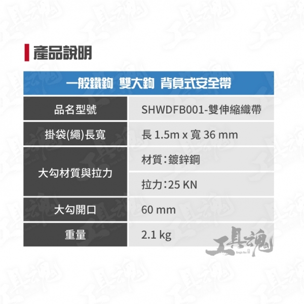 品名:一般鐵鉤雙大鉤 背負式安全帶