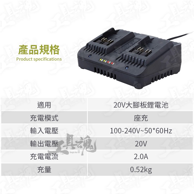 品名:20V鋰電雙充電器 (2A)