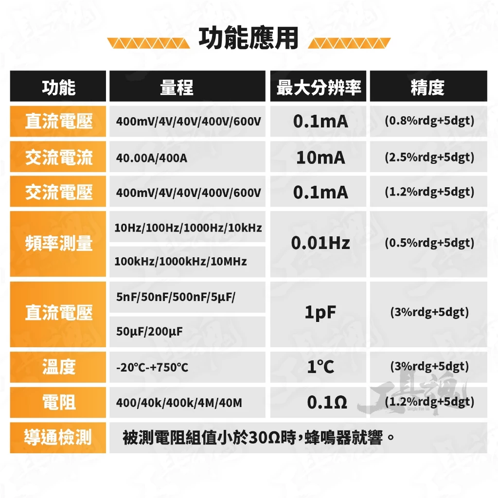 直流電壓: 400mV / 4V / 40V / 400V / 600V