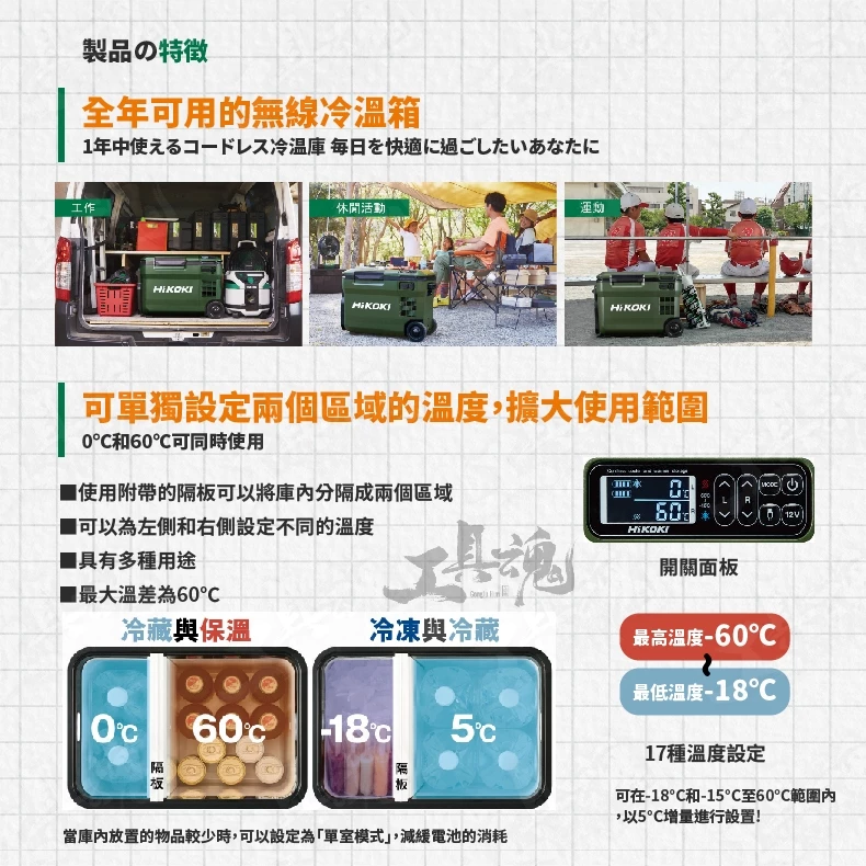• 設定溫度:-18℃及-15~60℃的5℃單位