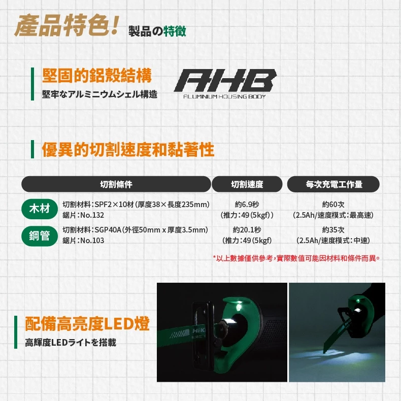 標準配件:電池、充電器、 鋸片(No.107、No.5)