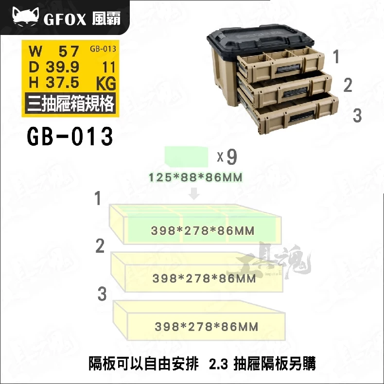 GFOX- 外部整理箱 GB-022 風霸 快扣系統 沙色 堆疊工具箱 工具推車 GB-006 整