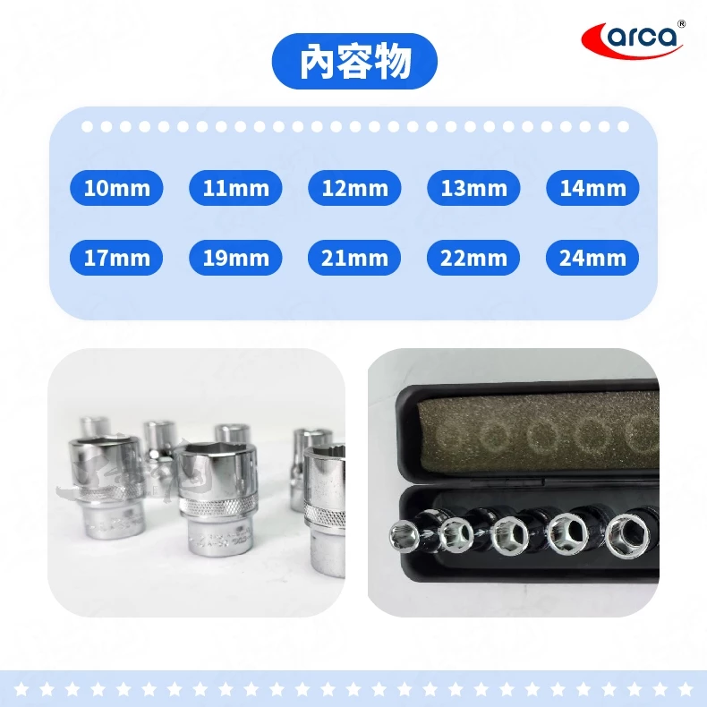 內容物:10mm、11mm、12mm、13mm、14mm、17mm、19mm、21mm、22mm、24mm