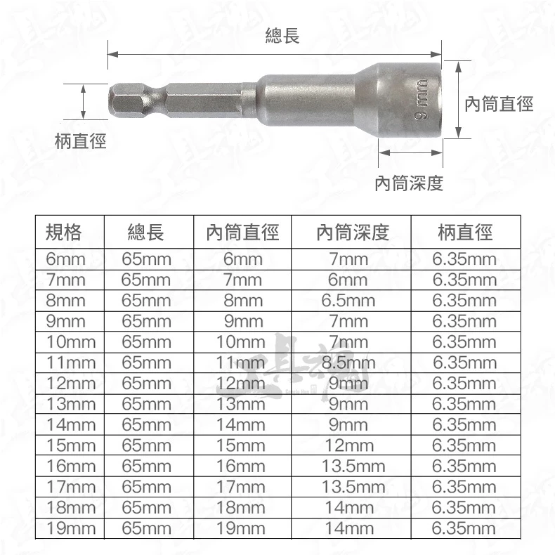 6mm / 7mm / 8mm / 9mm / 10mm / 11mm / 12mm / 13mm / 14mm / 15mm / 16mm / 17mm / 18mm / 19mm