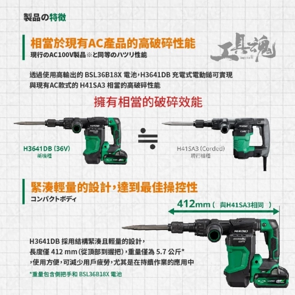 產品名稱:HIKOKI MV(36V) 無刷電動鎚