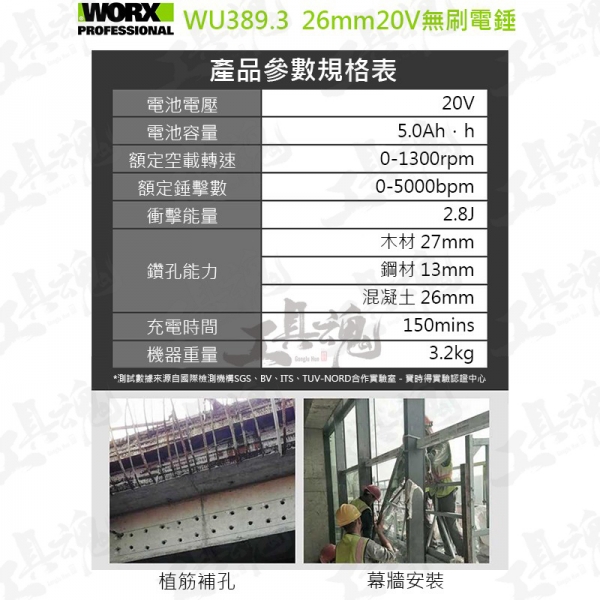 鑽孔能力:木材27mm、鋼材13mm、混凝土26mm