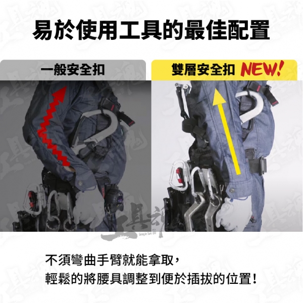 ■垂直連結2個安全扣。腰部空間多一倍