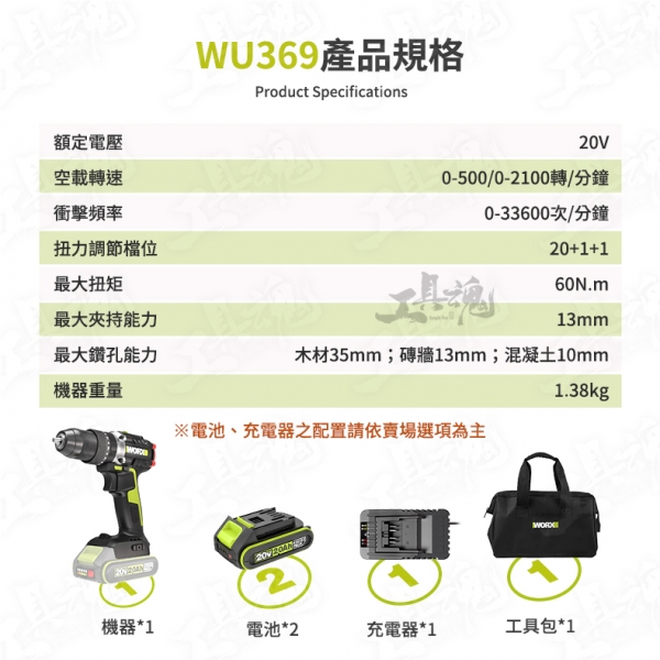品名:20V雙機組 (WU369+WU291D組合)
