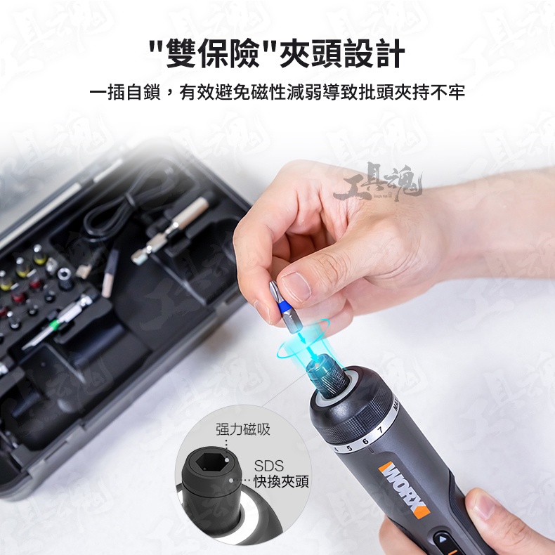 ◆"雙保險"夾頭設計,批頭緊固不脫落