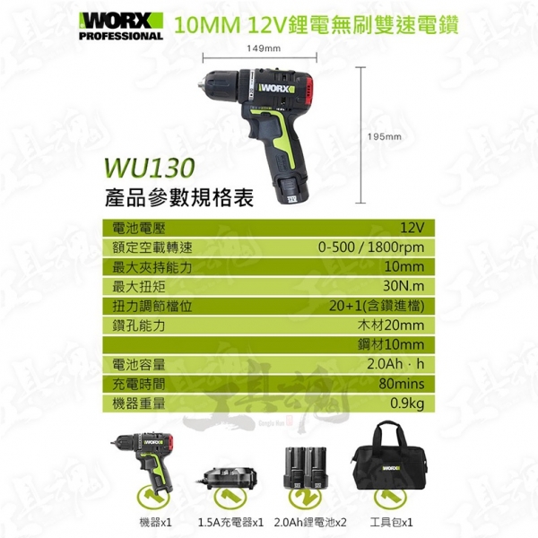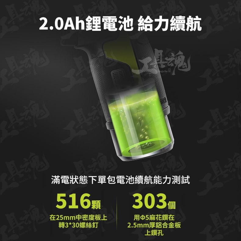 主機*1、2.0Ah電池*2、1.5A充電器*1、工具包*1、使用說明書*1、保修卡*1