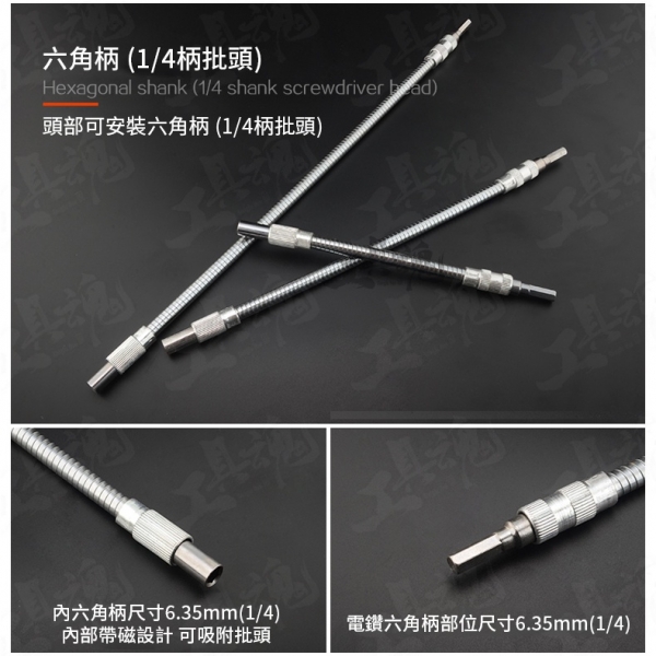 金屬萬向軟管 6.35mm 四種規格可挑選:150mm / 200mm / 300mm / 400mm ◆衝擊機種不適用 ◆各種角度都可轉換 ◆通用六角柄規格