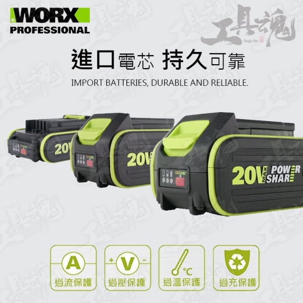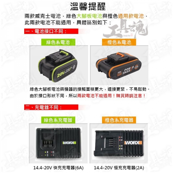 威克士- WA3551 WA3551.1 2.0AH 電池包 20V 鋰電池 電池 橘標 橘色 公司