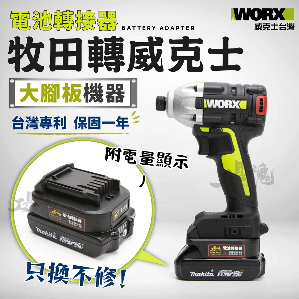 ✔️威克士小腳板電池(橘)轉大腳板電池(綠)可以直接以威克士大腳板充電器進行充電!