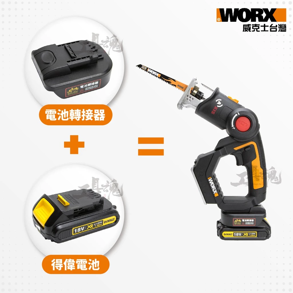 得偉Dewalt電池 轉 威克士Worx橘色系列『小腳板』產品使用 台灣設計專利 保固一年 新品瑕疵15天直接換新 注意:轉接器僅供轉接電池使用,請勿直接進行充電