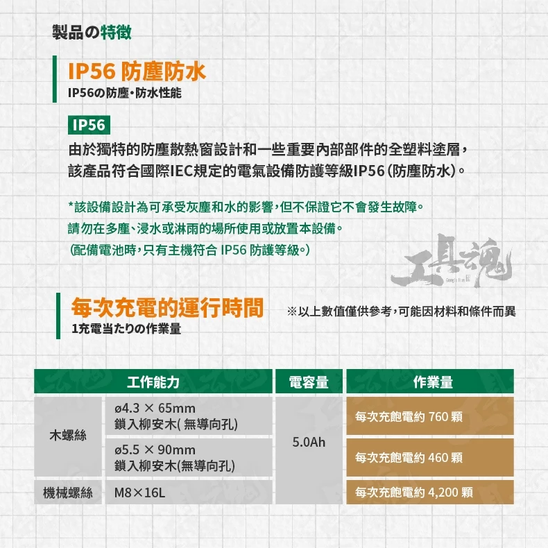 IP56防水 (*配備電池時,僅主機符合IP56防護等級)