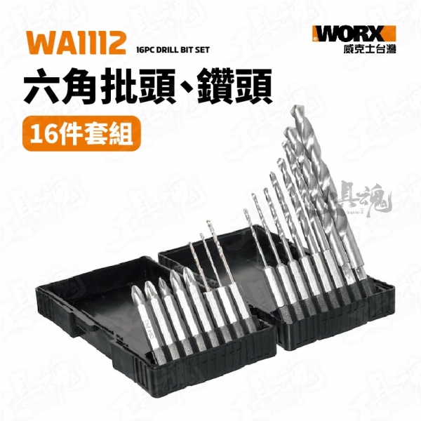 威克士- WA1112 六角批頭 鑽頭 16件套組 衝擊鑽 電鑽 起子機 批頭組 六角柄 WORX