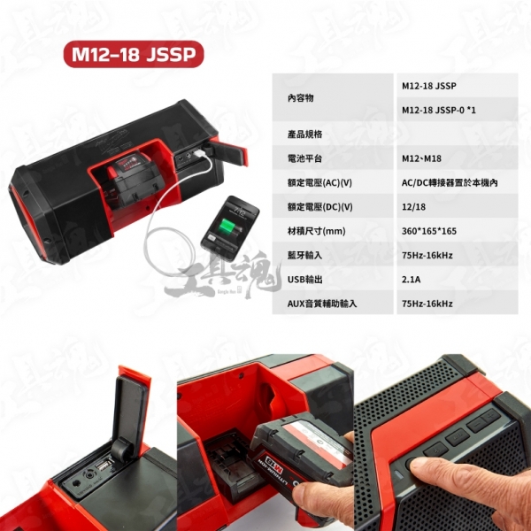 贈品:M12-18 JSSP ─ 12V/18V鋰電藍芽音響×1