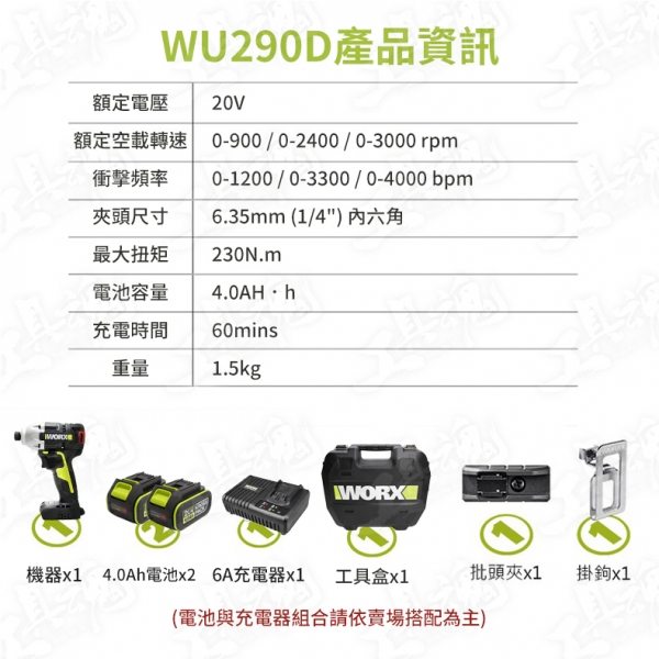 WU389裸機*1、WU290D裸機*1、5.0Ah電池*2、6A充電器*1、使用說明書*1、保修卡*1