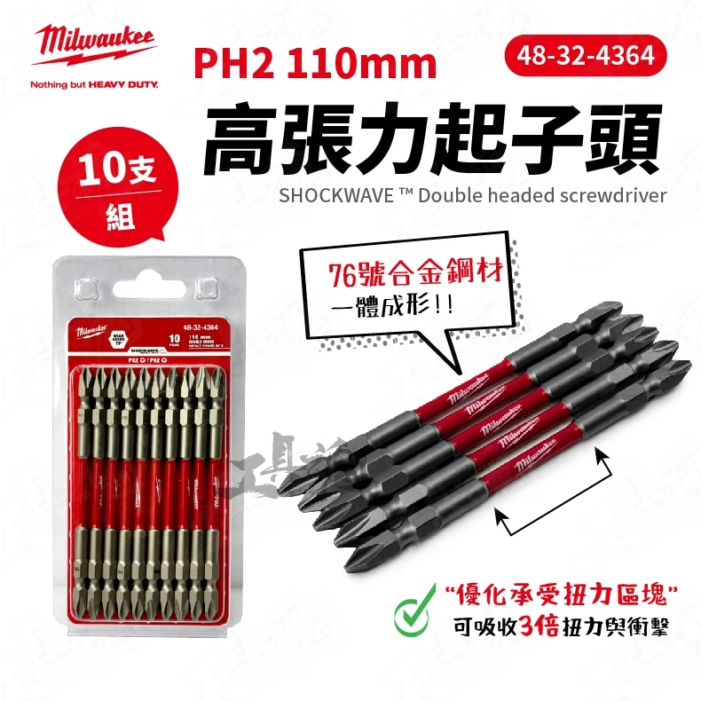 美沃奇- 【1支/5支】48-32-4364 美沃奇 雙頭 電動起子頭 PH2 110mm 高張力