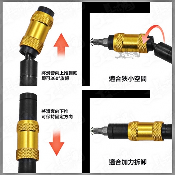 ◎將滑套向上推到底,即可360°旋轉