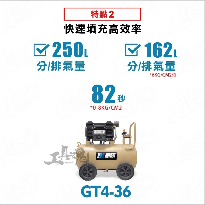 首頁- 空壓機 >GFOX風霸 >風霸- 【工具魂】GT4-36 ATV越野輪 全新升級散熱風扇 變頻無刷馬達空壓機 36L 鋁合金桶