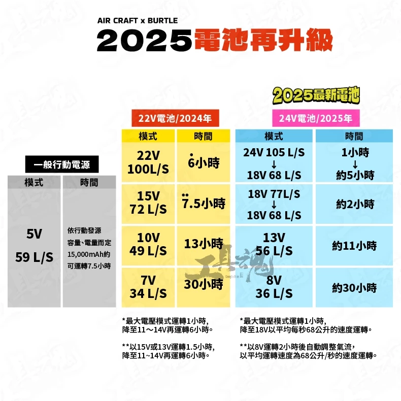 ・2025最新款電池最大輸出變24V!風量增加到每秒105公升!