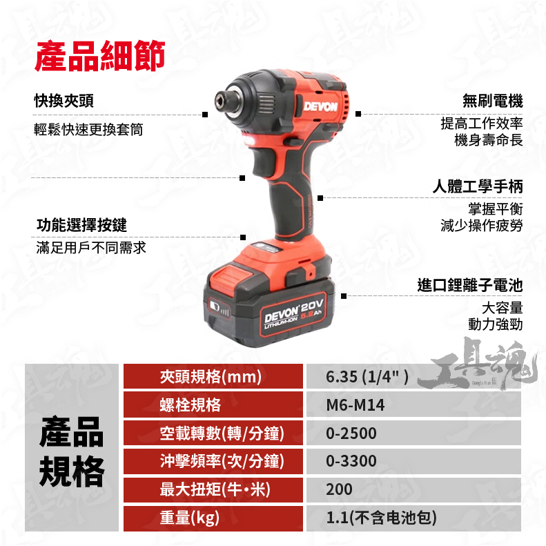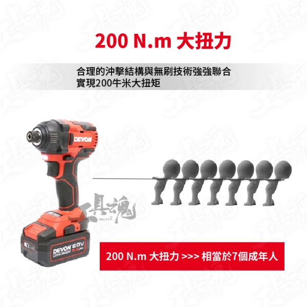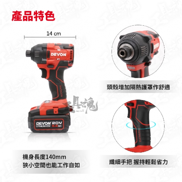 首頁- 電動工具 >DEVON大有 >大有- 起子機 200N.m 5733-Li-20H 衝擊起子 六角 大有 電動起子機 20V 鋰電