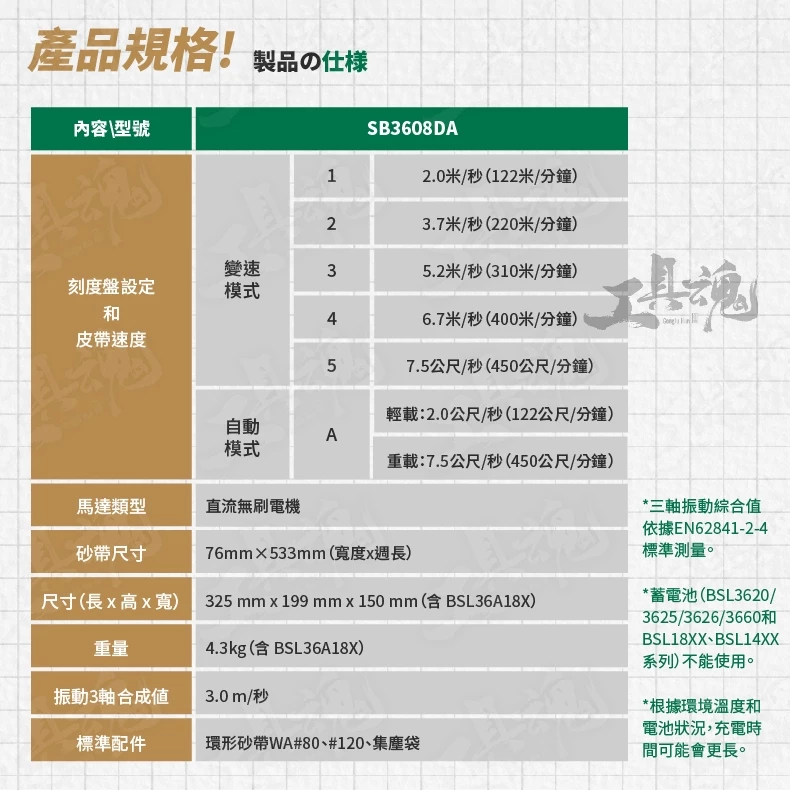 產品名稱:HIKOKI MV/36V 無刷砂帶機