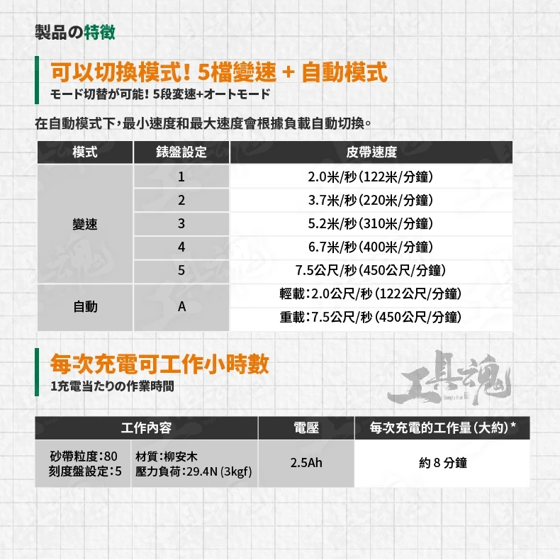 砂帶尺寸:76mmX533mm(寛度x週長)