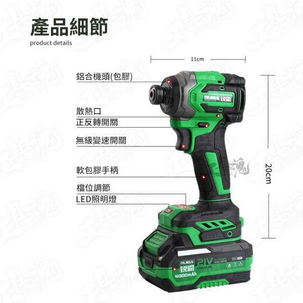 銳霸- 無刷衝擊起子機 RB-SD2108 起子機 無刷 21V RUIBA LED照明燈 緊湊