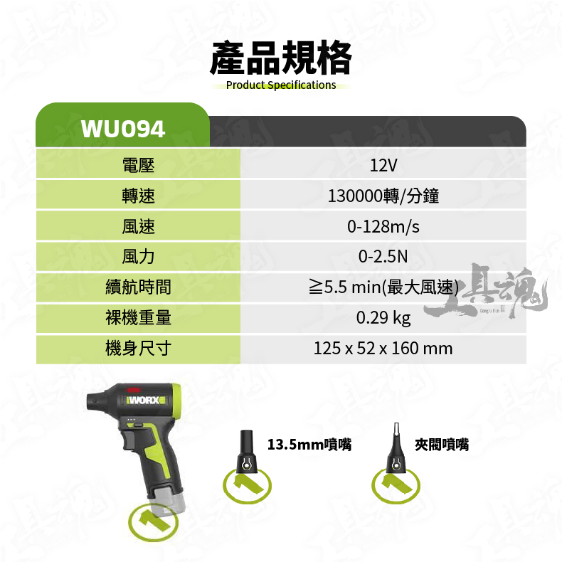 威克士- WU094 無刷吹塵槍 12V 吹風 鼓風機 迷你 吹塵槍 暴力風扇 worx wu094