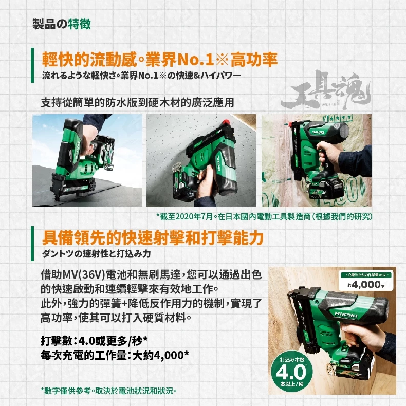 產品名稱:HIKOKI MV/36V 無刷ㄇ型釘槍(4mm)