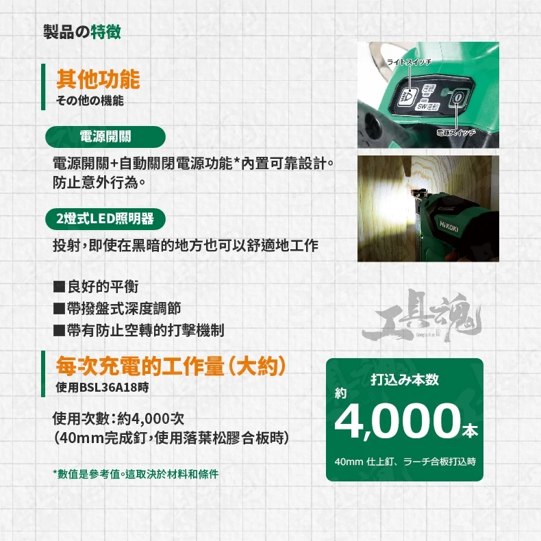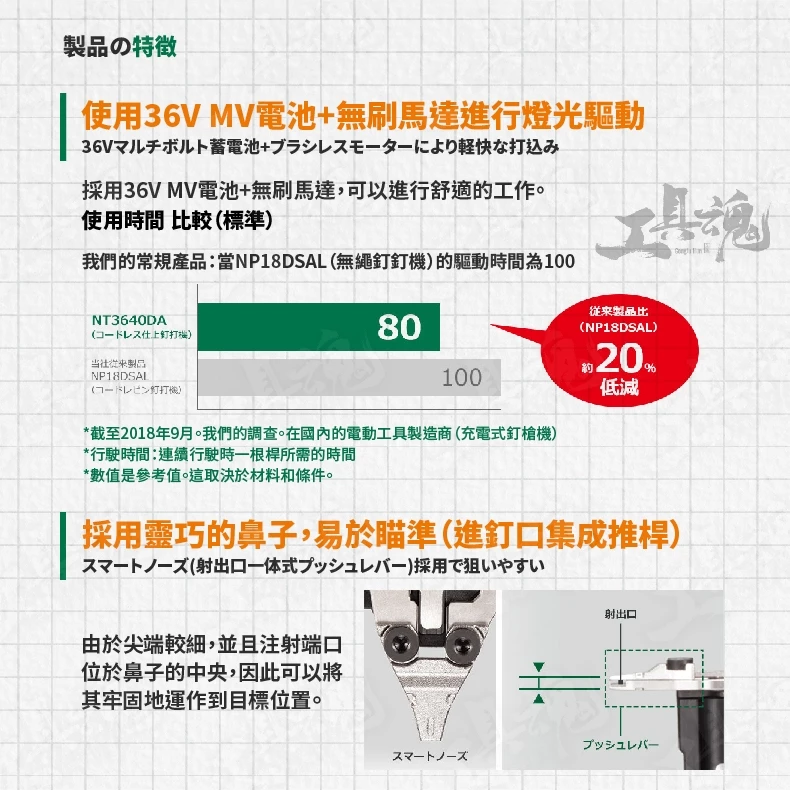 產品名稱:HIKOKI MV/36V 無線F釘槍