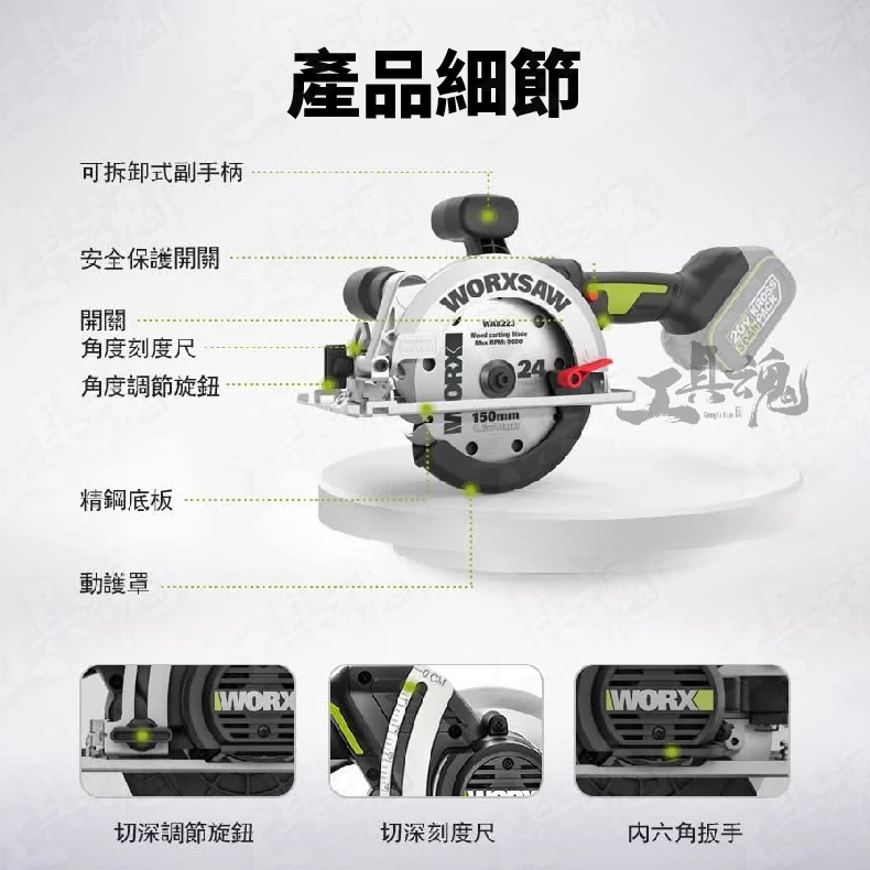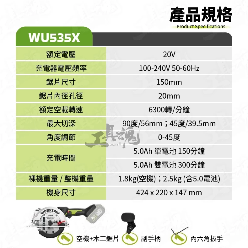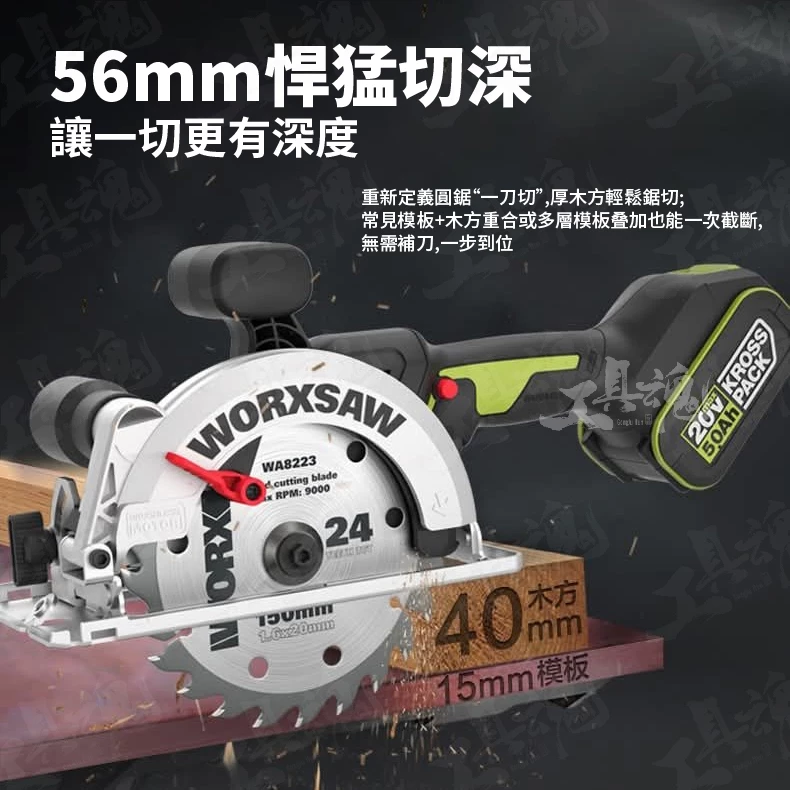 首頁- 電動工具 >威克士- WU535X 20V 無刷電圓鋸 150mm 圓鋸機 電動圓鋸 切割機 切斷機 worx