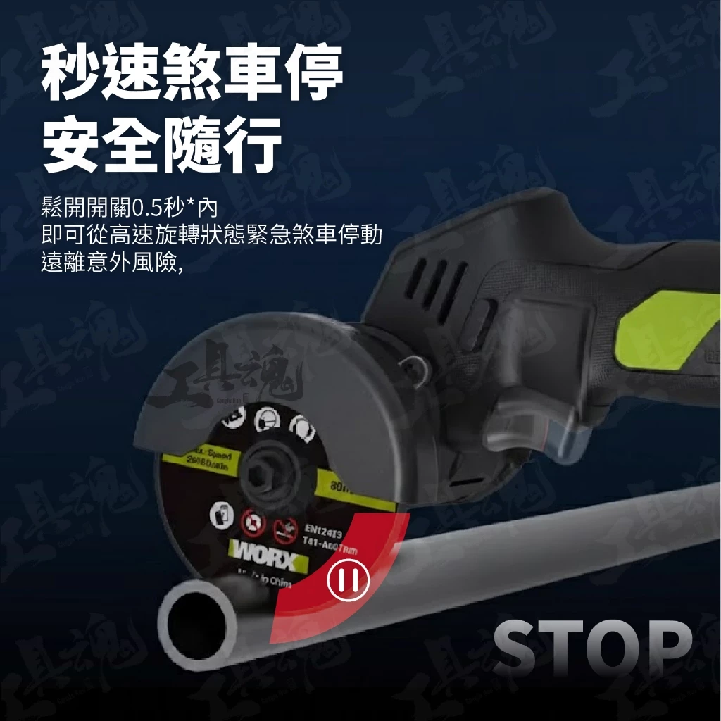 • 電子剎車,鬆開開關0.5秒內,秒速煞停
