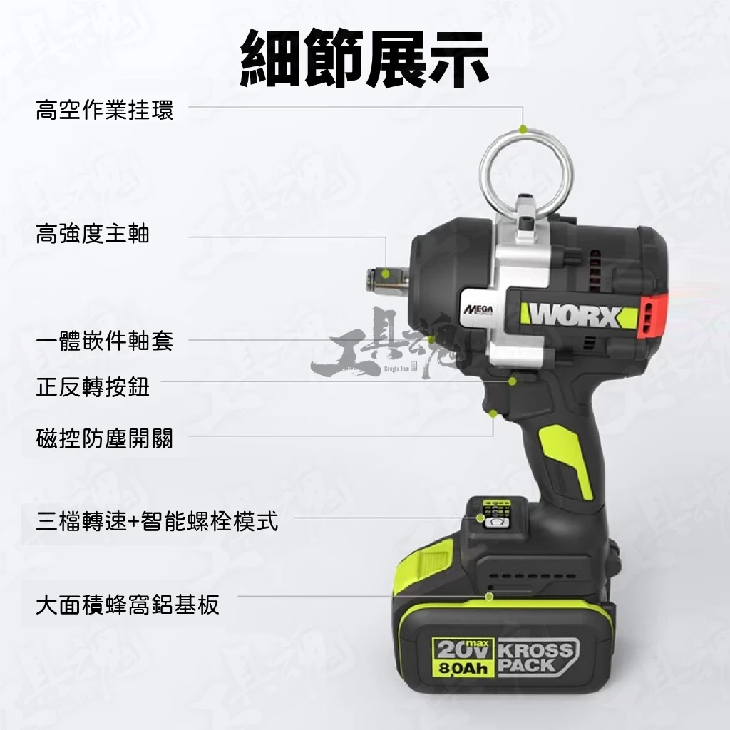 威克士 WU271 衝擊扳手 20V 1000Nm 衝擊扳手 整轉 恆扭技術 鋰電扳手 wu271