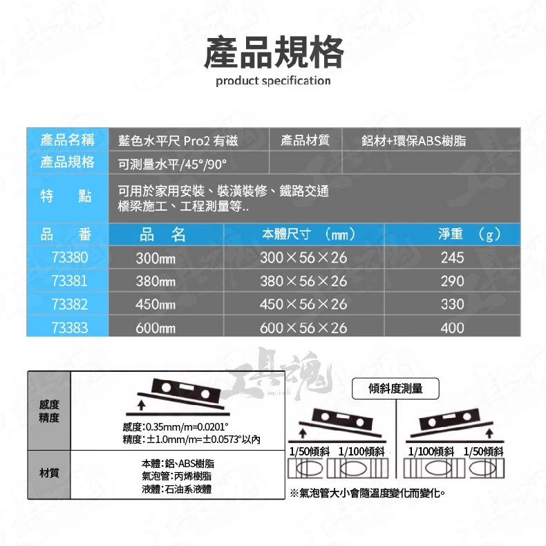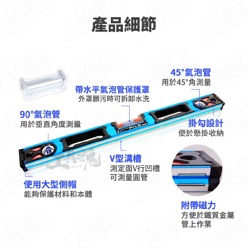●用於鋼筋、建築、土木、鋪設管道、電氣等作業的水平、垂直、45度的角度確認