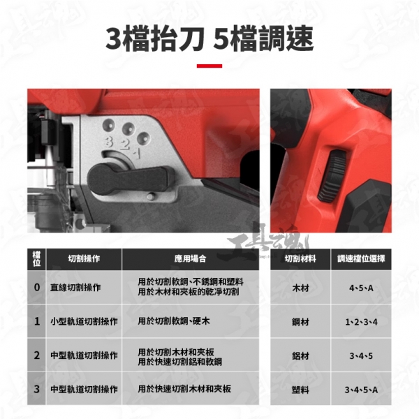 最大切割深度:木材 120 / 鋁材 20 / 鋼材 10 mm
