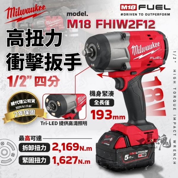 ●使用 M18™ REDLITHIUM™ FORGE™ 6.0Ah 電池時緊固扭力高達 1,627 Nm及最大反轉拆卸扭力高達 2,169 Nm