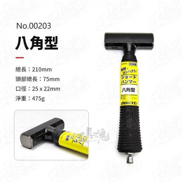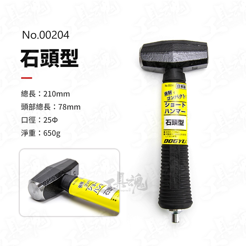 ●小巧便攜,可輕易放入工具包中攜帶 ●工具尾端帶可安裝墜落繩設計 No.00210 釘拔型B(止滑) 總長:210mm 頭部長度:116mm 口徑:25Φ 淨重:390g No.00202 先切型 總長:210mm 頭部長度:107mm 口徑:23x22mm 淨重:370g No.00203 八角型 總長:210mm 頭部長度:75mm 口徑:25x22mm 淨重:475g No.00204 石頭型 總長:210mm 頭部長度:78mm 口徑:25Φ 淨重:650g