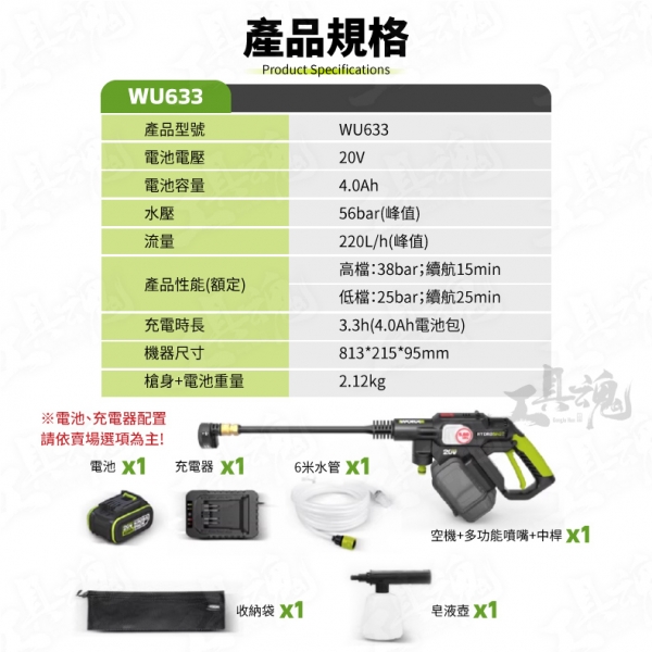主機*1、6米水管*1、多功能噴嘴*1、收納袋*1、皂液壺*1、中杆*1 (380mm)
