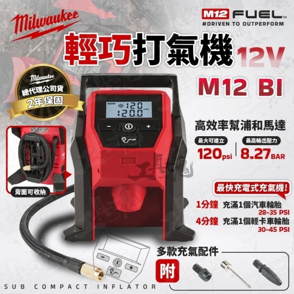 美沃奇- BI 輕巧打氣機 打氣機 12V 鋰電充氣機 便攜式 小型打氣 灌風 M12 BI 米沃奇