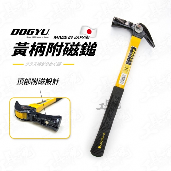 土牛/DOGYU- 黃柄附磁鎚 日本製造 附磁 槌子 鎚子 鐵鎚 木工 板模 羊角鎚 角柄
