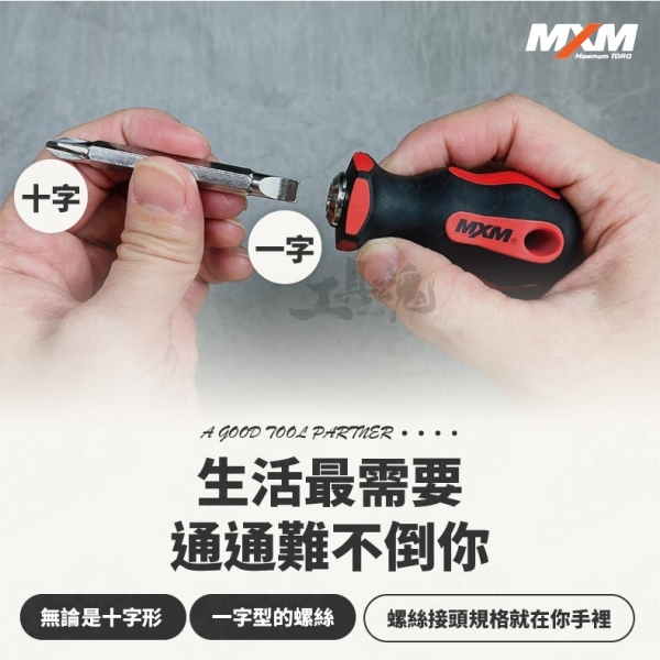 結合二合一雙頭兩用替換式起子,具備十字及一字兩種實用規格