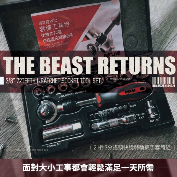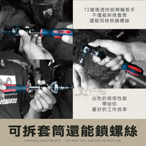 【MXM這套72齒搖頭快脫棘輪扳手套筒工具組】