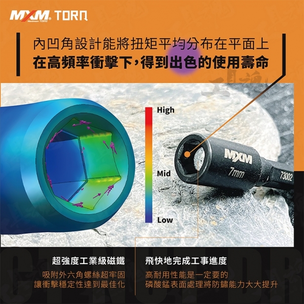 在六角內孔處我們採用R角設計,不僅能提供更好的扭矩轉換效能,還能夠確保接合處的穩定性。
