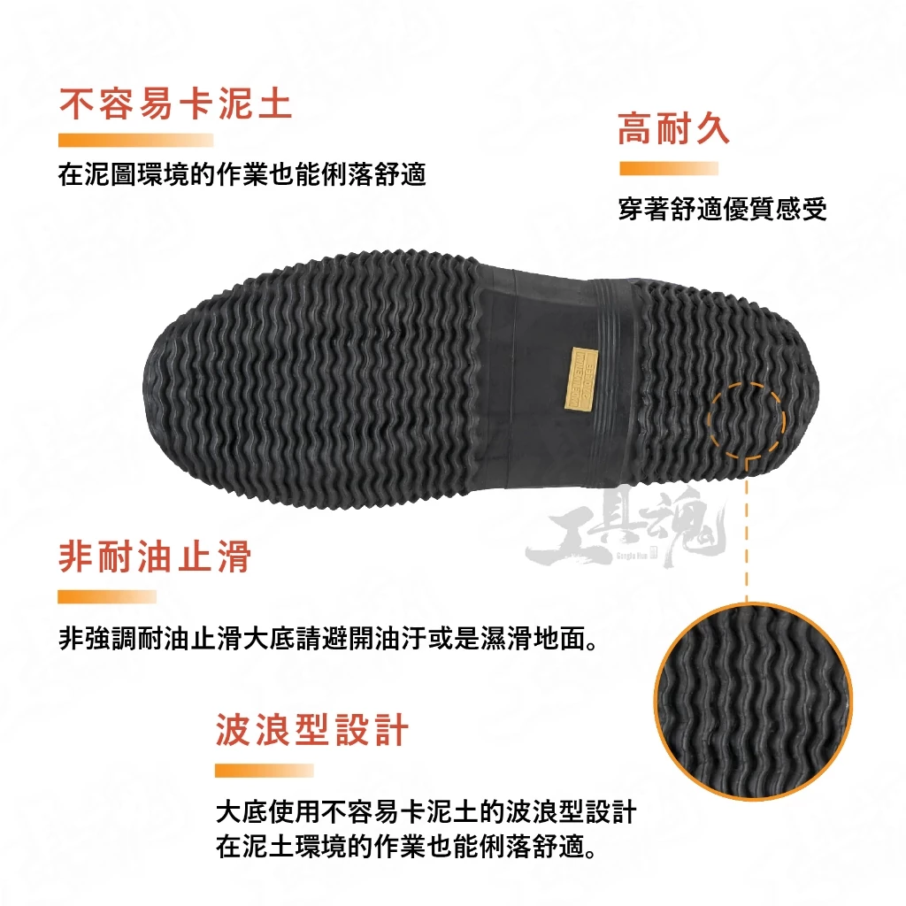 ✔️大底使用不容易卡泥土的波浪型設計,在泥圖環境的作業也能俐落舒適