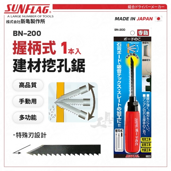 新龜- 建材挖孔鋸 BN-200 握柄式 刀片 替刃式 挖孔鋸子 日本 新龜 SUNFLAG 調整手