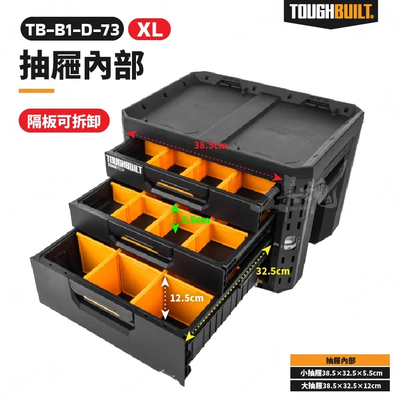 托比爾- 抽屜式工具箱 TB-B1-D-73 2+1抽 XL TB TOUGHBUILT 抽屜式 快